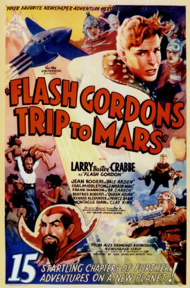 1936 - Universal releases the "Flash Gordon: Space Soldiers" movie serial (13 chapters) with Clarence "Buster" Crabbe as Flash and Jean Rogers as Dale. Massively successful, it inspires studios to transfer many other comics to the screen (The Phantom, Dick Tracy etc.)- 1938 - Universal releases "Flash Gordon's Trip to Mars" movie serial (15 chapters). Buster Crabbe and Jean Rogers again star.