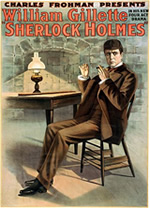 Sherlock Holmes transitioned from the pages of Doyle's books to virtually every artistic genre except perhaps interpretive dance (tho I have found reference to a ballet, so perhaps this is untrue)! The first major actor to appear as Holmes was William Gillette who appeared on stage in over 1,200 performances from the turn of the 20th Century to the 1930s.