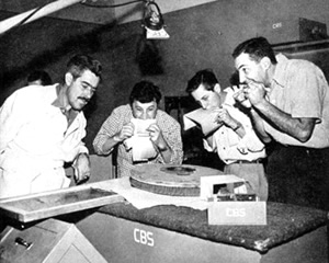(left to right) Escape! producer William Robson with sound effects team Bill Gould, Cliff Thorsness and Ross Murray.Thorsness passed away in 2002, but in 2001, when One Act announced our intention to create a nw Three Skeleton Key, his friend and protégé Tony Palermo contacted us and graciously passed along some of Cliff’s secrets behind creating these unforgettable horrific creatures. For fans and producers of audio theatre, it is comforting to know that Cliff’s irreplaceable collection of sound effects equipment (don’t call it “Foley”) now resides in the Museum of Television and Radio where it is still used today.